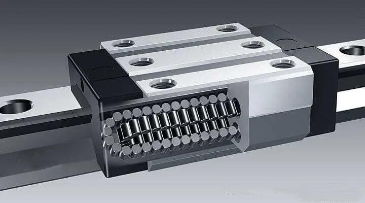 直線滾柱導軌系統(tǒng)是平面導軌與直線滾柱導軌的組合,用滾柱安裝在平行導軌上,用滾柱代替鋼球承載機床的運動部件。優(yōu)點是接觸面積大、承載負荷大、靈敏度高。從床身尾部看,支架與滾柱置于平面導軌的頂面和側面,為了獲得高精度,在機床工作部件和支架內面之間,設置一塊楔板,使預加負載作用于支架的側面。
